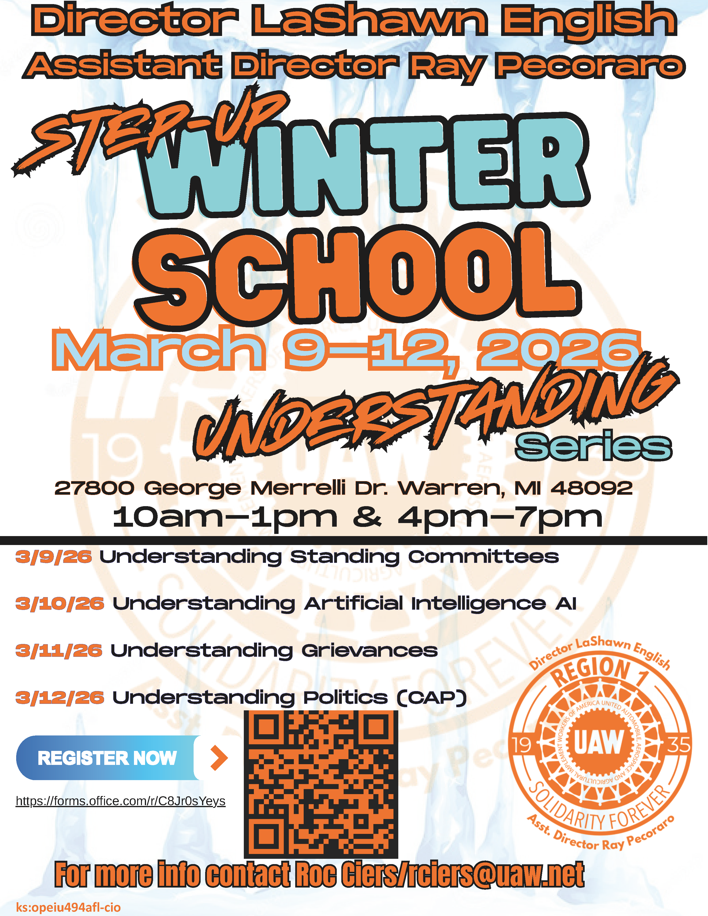 The STEP-UP Winter School – Understanding Series is a multi-day educational program designed to strengthen leadership skills and expand knowledge for union members and activists. Sessions will cover key topics including standing committees, artificial intelligence, grievances, and political action (CAP), providing participants with practical tools and insights to support effective representation and engagement.
