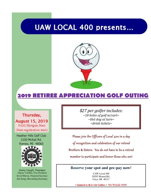 UAW Local 400 Retiree Appreciation Golf Outing