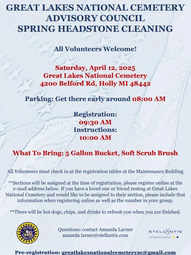 News GREAT LAKES NATIONAL CEMETERY ADVISORY COUNCIL SPRING HEADSTONE CLEANING robert delpapa 02 Apr, 2025 Social share icons Document Collection headstone_cleaning.pdf headstone_cleaning.pdf