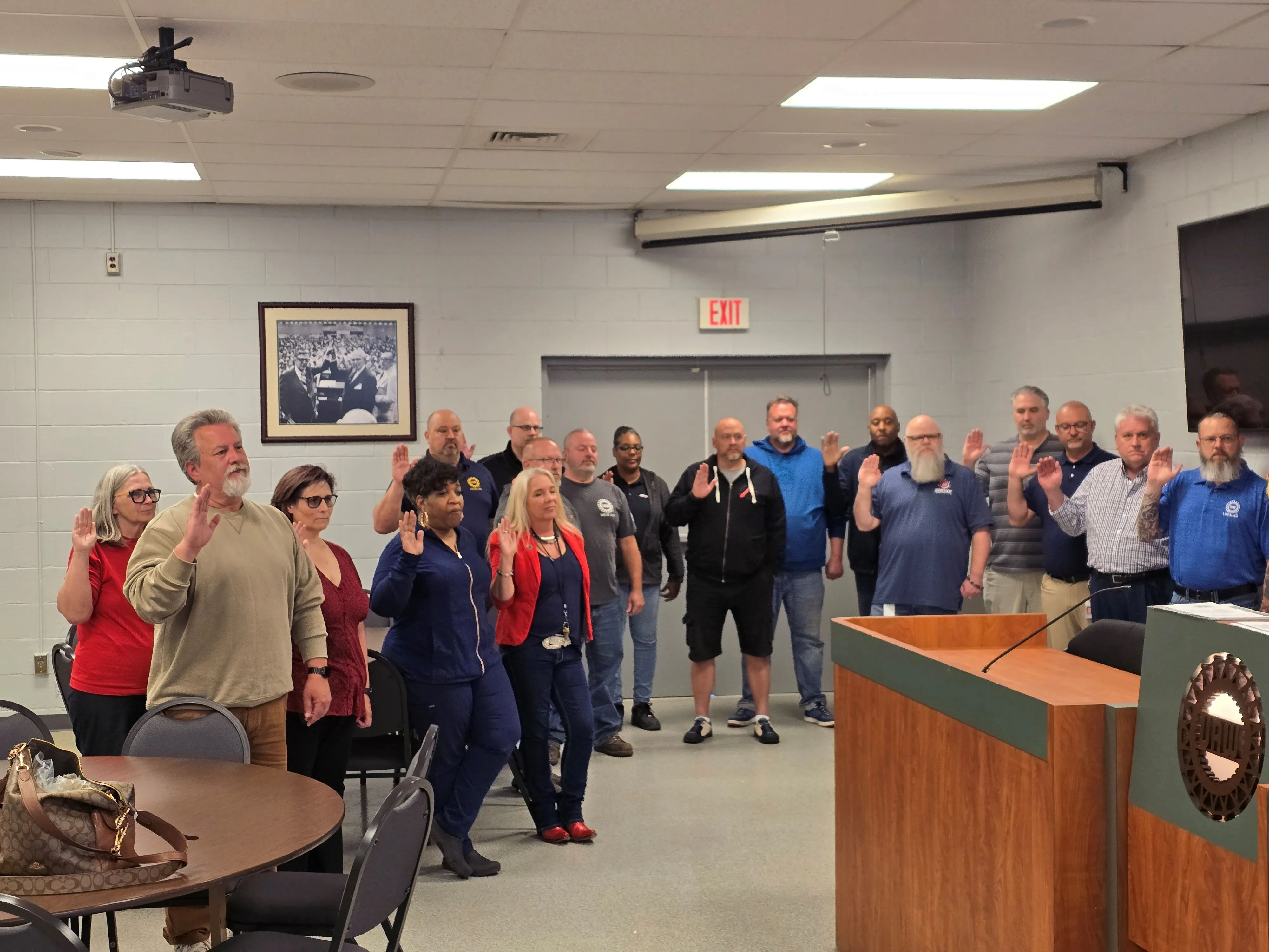 UAW Region 1 Director LaShawn English swore in the new Local 412 Officers, Chairpersons and Stewards during the May 19th Joint Council / Executive Board meeting at Local 412.