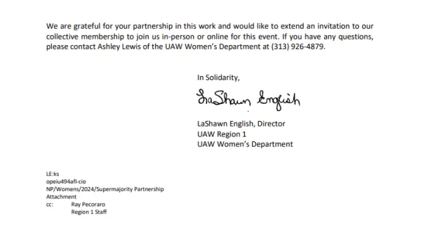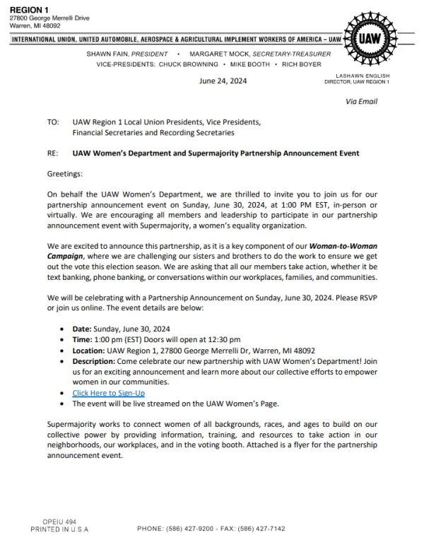 News UAW Women’s Department and Supermajority Partnership Announcement Event robert delpapa 26 Jun, 2024 Social share icons