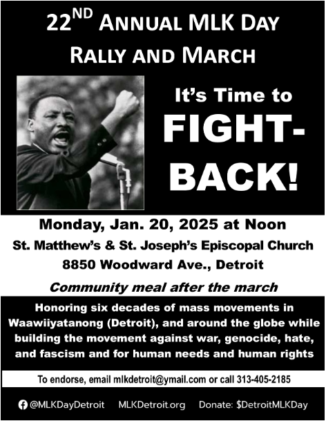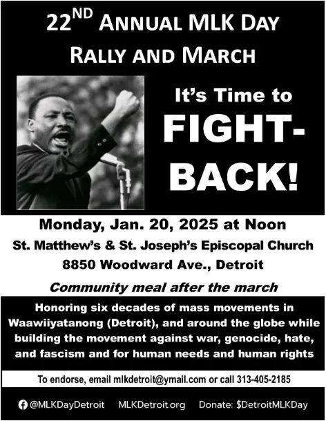Blog 22nd Annual Detroit MLK Day Rally and March - Monday, January 20, 2025. UAW Region 1 14 Jan, 2025 Social share icons