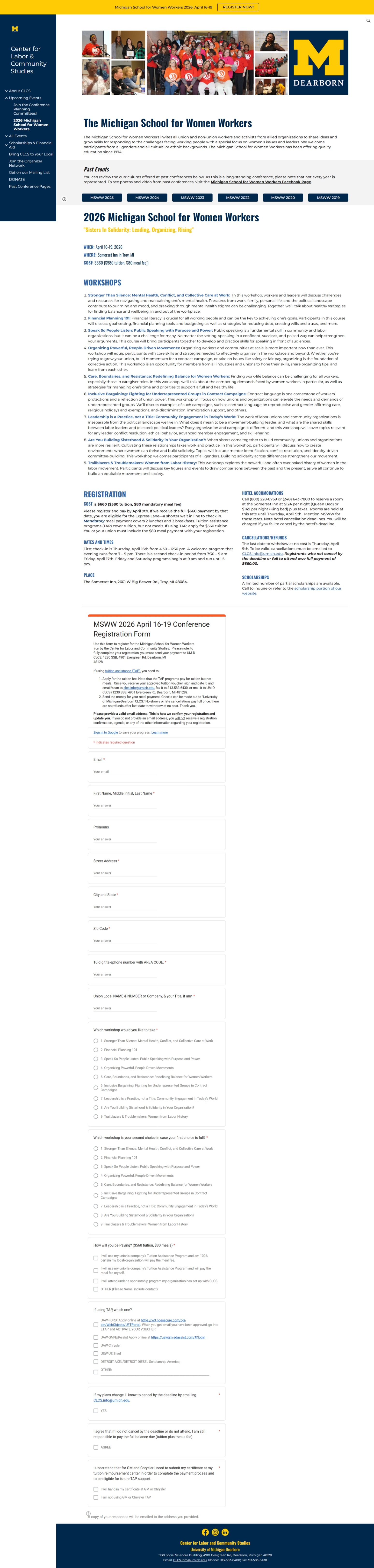 Center for Labor & Community Studies - 2026 Michigan School for Women Workers