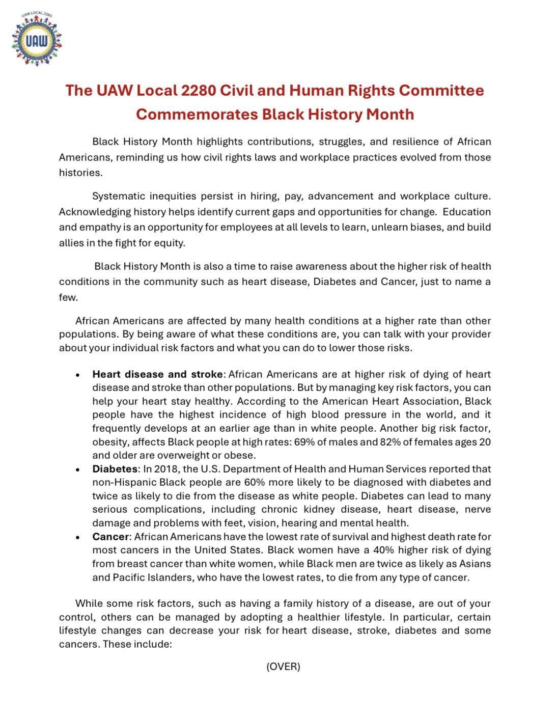 Events, Flyers and Region 1 Updates A message from the Local 2280 Civil & Human Rights Committee in honor of Black History Month Nicole Didia 10 Feb, 2026 Social share icons
